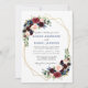 Modern Elegant, Classic Blue, Watercolor Burgundy Marsala Blue Pink Floral with Greenery Wedding Invitation. Geometric Gold Frame.