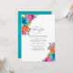 Watercolor floral fiesta bachelorette party invite with handwriting typography and turquoise watercolor wash reverse designed to be quickly and easily customised to your event specifics.