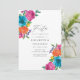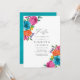 Watercolor floral fiesta engagement party invite with handwriting typography and turquoise watercolor wash reverse designed to be quickly and easily customised to your event specifics.