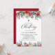 Watercolor Festive Floral Garland Winter Christening Invitation | Invite family and friends to your baby's Christening with this customisable floral invitation. It features watercolor illustrations roses, poinsettias, hollies, pine needles, pine cones and other festive accents. You can further personalise the back of the invitation by adding a photo or any image.
