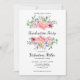 Beautiful floral invitation with pink watercolor floral arrangement on white background