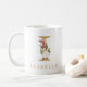 A personalised coffee mug with a faux gold letter "I" monogram, featuring decorative watercolor floral and foliage illustrations. Easily customise it with your name or create a unique gift for your loved ones.