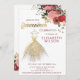 Watercolor Floral gold sequins dress Quinceañera Invitation