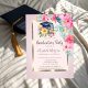 Watercolor Floral Grad Cap Dots Graduation Invitation