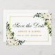Watercolor Floral Green White Gold Save The Date Engagement Card