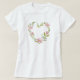 This watercolor illustration showcases a soft floral heart frame made of delicate pink blossoms, tiny white flowers, and flowing green leaves. The airy hand-painted style and gentle brushstrokes create a light, romantic botanical composition with a clean open center.
