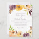 These wedding invitations feature a watercolor floral in a loose, romantic style. Peaches, golds and purples make up the colour palette.