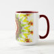 This brightly-coloured mug features a kaleidoscopic fractal image resembling an autumnal-hued watercolor flower.
