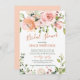 Elegant and modern floral bridal shower invitation - This design features watercolor floral peach pinkish roses contrasted with light greenish leaves. There is a matching envelope.