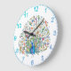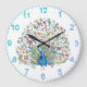 Watercolor floral peacock large clock