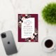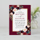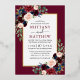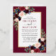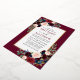 Modern Elegant Watercolor Burgundy Blue Floral Wedding Invitation includes burgundy roses, pink roses, blue flowers, red flowers, eucalyptus leaves and botanical greenery. Gold Foil Frame. Burgundy Background. Photo Back.