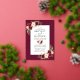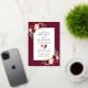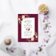 Modern Elegant Watercolor Burgundy Floral Wedding Invitation includes burgundy roses, pink roses, red roses and botanical greenery. Gold Foil Frame. Burgundy Background. Photo Back.