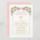 Watercolor Floral Pink Bow Gold Frame Baptism Invitation