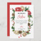 Watercolor Floral Red Berries Merry Christmas Holiday Card