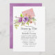 Purple and coral pink roses and peonies floral long distance baby or bridal shower by mail invitation.