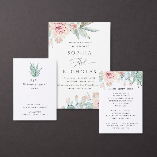 Watercolor floral succulent. Cactus Save the Date Postcard