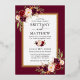 Modern Elegant Watercolor Burgundy Floral Wedding Invitation includes burgundy roses, pink roses, red roses and botanical greenery. Burgundy Background. Two Frames - Double Frame - Gold Foil
