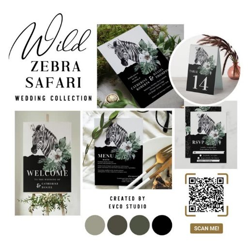 Watercolor Floral Wild Zebra Safari Wedding Coasters features an elegant watercolor wild zebra with watercolor flowers on a black and white background with the bride and groom's names and the wedding date. Personalise by editing the text in the text boxes. Designed for you by Evco Studio www.zazzle.com/store/evcostudio
