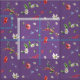 A pretty pattern of scattered wildflowers in shades of pink, red, yellow and white, shown on a lavender background.