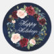 Watercolor Floral Wreath Happy Holidays Round Classic Round Sticker