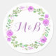 Watercolor Floral Wreath Purple Wedding Classic Round Sticker