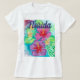 This shirt features a bright watercolor of tropical hibiscus in pinks and lavenders, with Florida writen on it in Purple. Change the text if you like.