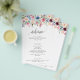This beautiful floral design features watercolor flowers in green, blue, peach, pink and burgundy. Add your information using the template form. The Customise Further feature can be used to access the advanced editing menu where you can change the font, colours and layout of the text.