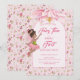 A cute girl fairy birthday invitation featuring delicate pink modern typography and stylish script, plus a sweet drawing from a Black fairy.