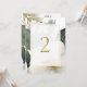 Chic and elegant. This gorgeous wedding table number features a lovely watercolor floral bouquet with imitation gold accents. The design includes a contemporary font in imitation gold set inside a soft white overlay with delicate frame. The design is repeated at the back.