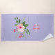 Watercolor Flower, Name & Monogram on Lavender Beach Towel