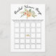 Watercolor flowers bouquet bridal Shower bingo game card. This lovely design showcases a bouquet of peach and coral cactus flowers and green succulent.