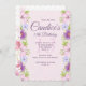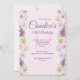 A beautiful border of pink and lavender flowers "grow" on this pink invitation. Beautiful for any age and any feminine celebration (<a href='https://www.freepik.com/free-vector/cherry-blossom-background-in-watercolor-style_1722364.htm'>Designed by Freepik</a>). <br/><br/>The card is easy to customise with your wording, font, font colour and choice of six paper types.<br/><br/>Not exactly what you're looking for? All our products can be custom designed to meet your needs at no extra charge.<br/><br/>Simply contact us at askcottonlamb@gmail.com<br/><br/>Coordinating products available: