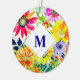 Watercolor Flowers Monogrammed Ceramic Ornament