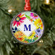 Pretty pink, yellow and purple watercolor ai art flowers floral Christmas ornament. Add initial in the personalised area.