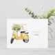 Mediterranean Watercolor Custom Thank You Card. Name. Typography. Flowers on a Scooter.