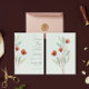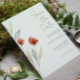Watercolor red flowers with sage green leaves on a custom pale green background customisable save the date invitation.