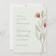 Watercolor red flowers with sage green leaves on a custom pale green background customisable wedding invitation.