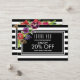 These personalised Thank You For Your Order Discount cards are great to show customer appreciation after a purchase of goods or services, to make a special offer or to use during the holiday season. Coordinates with our Watercolor Flowers & Stripes paper goods and accessories.