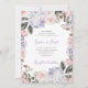 This beautiful wedding invitation features a frame of watercolor vintage style pink and purple hydrangea flowers and roses, with elegant modern script and classic text. The back of the invitation features your photo surrounded by another floral frame, and a scannable QR code so your guests can visit your wedding website for more details.