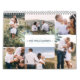 Our family photo collage calendar features our hand painted eucalyptus and greenery foliage in natural muted shades of sage and teals. Delicate line-drawn floral flowers beautifully complement the watercolor art to create a beautiful mixed media style with anorganic, modern watercolour art style. The cover is designed with a six photo collage to display your own special family photos and personalised with year and name. Display your special memory photos on each page of the calendar. Pages designed wth alternating full photo layout and photos framed with watercolor greenery. Each month is displayed over the photos in an elegant script typography. The back of the cover is personalised with monogram initial. All artwork contained in this elegant watercolor foliage photo card collage calendar are hand-drawn artwork by Moodthology.
