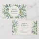 An elegant feminine watercolor greenery business card featuring beautifully painted green leaves foliage.