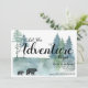 Adventure awaits, rustic woodland bears baby shower invitation featuring mum and baby bear and a watercolor forest in green and blue hues. Rustic woodlands style. Weathered wood texture on the back of the invitation