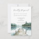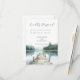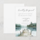 A Watercolor forest mountain lake rsvp featuring a serene mountain lake and surrounding pine forest with a dock leading into the water. Designed for couples planning a rustic, nature inspired or destination wedding. Soft blue and green tones and a clean, minimal layout keep the focus on your response details while maintaining a refined and cohesive look. A beautiful complement to matching wedding stationery for lakeside and mountain celebrations. Available in print, digital download, or both.
