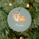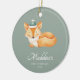 Watercolor Fox Baby First Christmas Green Ceramic Ornament