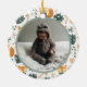Christmas ornament featuring a cute fox paired with a decorative script font and a serif font in which your baby name and age are written in on the front. On the back you have a cute pattern as a background and in the middle a personalised photo. Check out our store for more matching items from this collection.