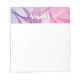 Watercolor coloured purple red splash Notepad with name. This is a notepad featuring a vibrant, watercolor-style design. The colours prominently displayed are purple and red, creating a striking splash effect across the cover. Additionally, the notepad is personalised with a name, adding a unique touch to the item.