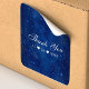 Watercolor Galaxy Cosmic Stars Starry Wedding Thank You Square Sticker. This design features twinkling star lights in space against a nebula starry sky of a celestial navy blue universe. Personalise this custom design with your own text and event details.