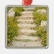 Watercolor garden with yellow flowers in blossom and stone stairs