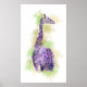 A bright bold and colourful rendering of a giraffe in purples and yellows.