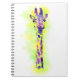 A bright, bold and colourful rendering of a giraffe. The purples, yellow and greens make a very bold statement.